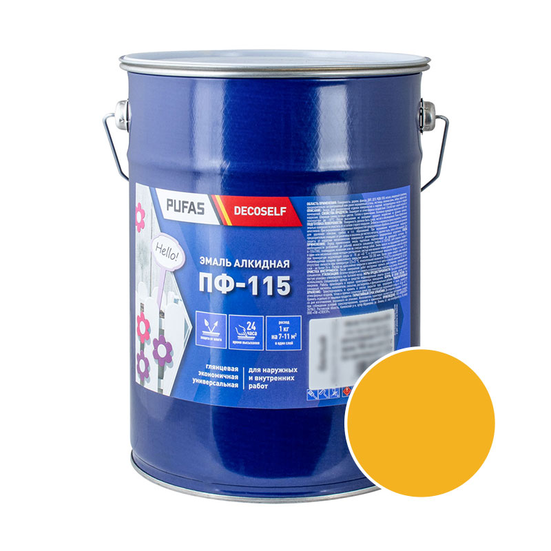 Эмаль Pufas Decoself ПФ-115 желтая (5 кг)