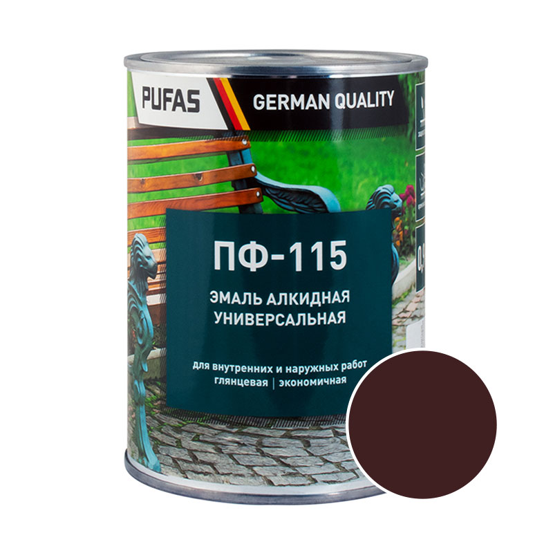 Эмаль Pufas ПФ-115 ГОСТ коричневая (0,9 кг)