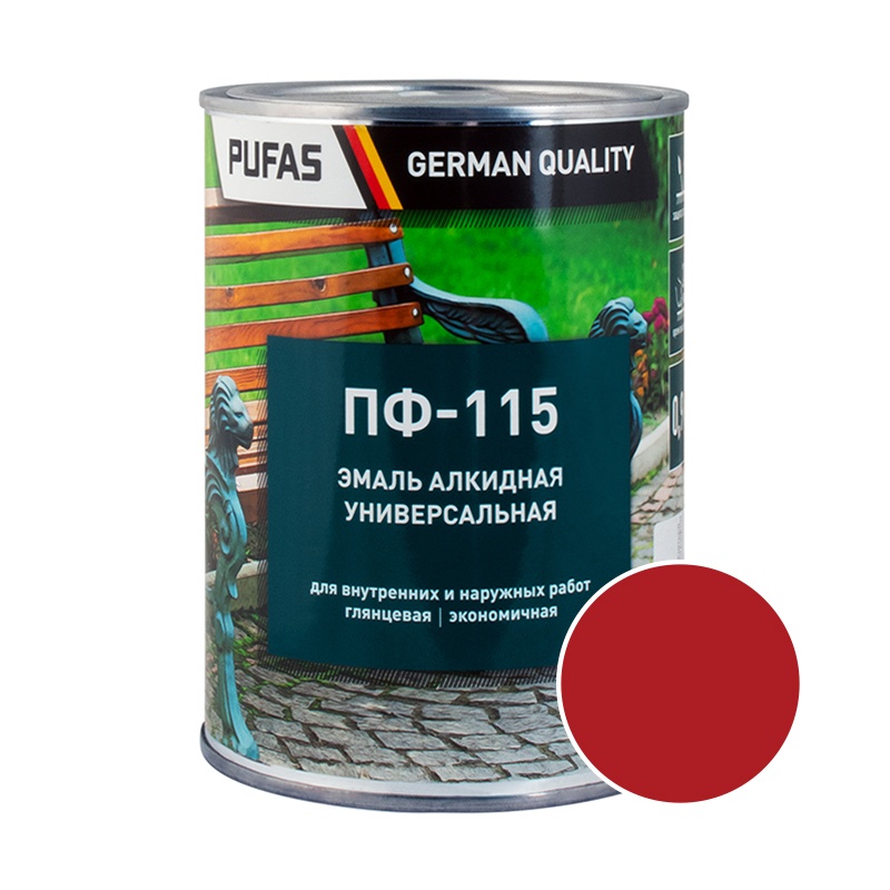 Эмаль Pufas ПФ-115 ГОСТ красная (0,9 кг)