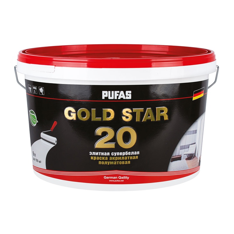 Краска акрилатная Pufas Gold Star 20 основа D полуматовая (9 л)