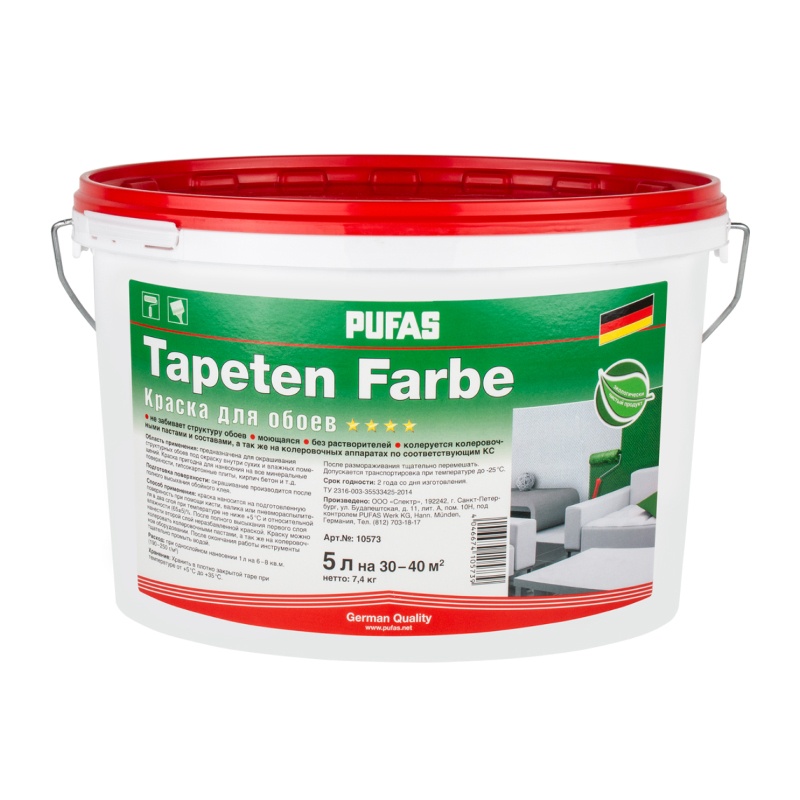 Предназначена для окрашивания структурных обоев под окраску внутри сухих и влажных помещений. Краска пригодна для нанесения на все минеральные поверхности, гипсокартонные плиты, кирпич бетон и т.д.
