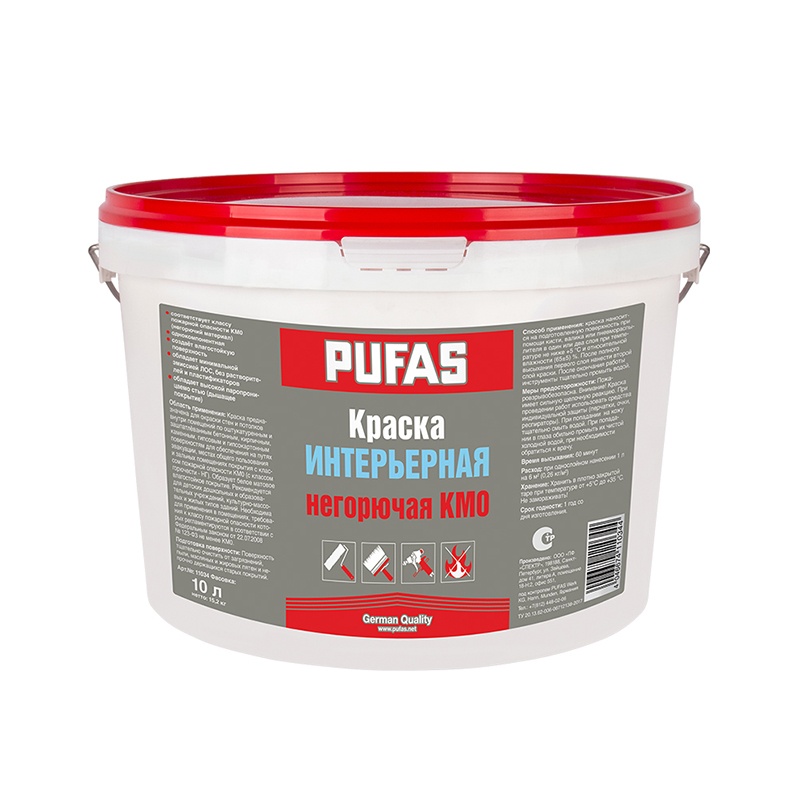 Предназначена для окраски стен и потолков внутри помещений по оштукатуренным и зашпатлёванным цементными материалами бетонным, кирпичным, каменным и гипсокартонным поверхностям для обеспечения на путях эвакуации, местах общего пользования и зальных помещениях покрытия с классом пожарной опасности КМ0 (с классом горючести — НГ). Рекомендуется для детских дошкольных и образовательных учреждений, культурно-массовых и жилых типов зданий.
