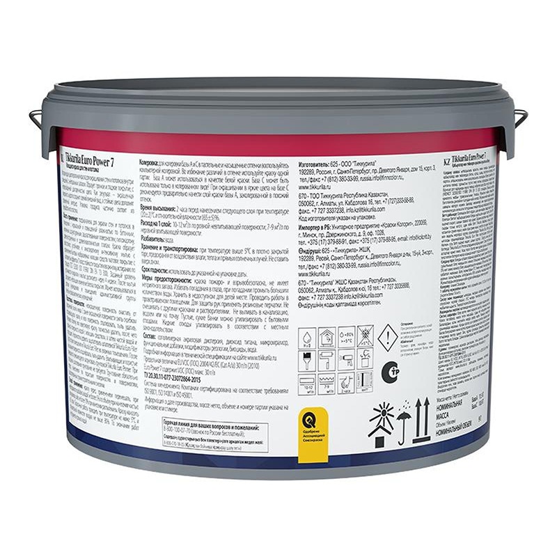 Краска моющаяся Tikkurila Euro Power 7 основа А матовая (9 л)