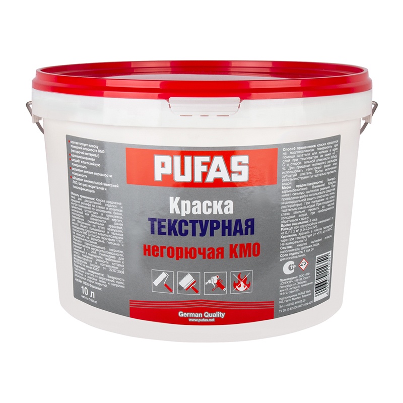 Предназначена для декоративной отделки и придания рельефа минеральным поверхностям таким, как бетон, цементные и гипсовые штукатурки, кирпич, поверхности, внутри сухих помещений и помещений с повышенной для обеспечения на путях эвакуации, местах общего пользования и зальных помещениях покрытия с классом пожарной опасности КМ0.