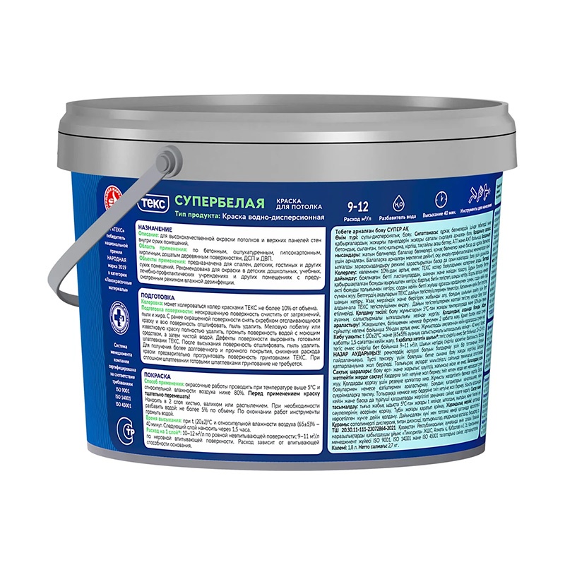 Предназначена для окраски потолков в сухих помещениях. Образует белое матовое покрытие. Легко наносится — не стекает с валика. Создает ощущение светлого и просторного помещения.