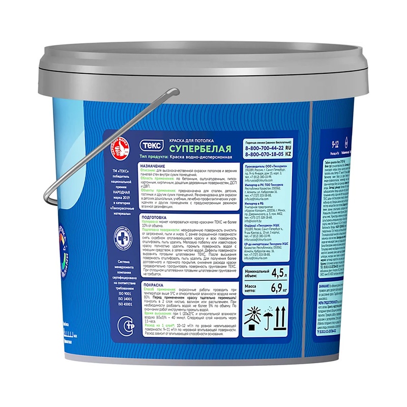 Предназначена для высококачественной окраски потолков и верхних панелей стен внутри сухих помещений по бетонным, оштукатуренным, гипсокартонным, кирпичным, деревянным поверхностям. Образует белое матовое покрытие. Легко наносится — не стекает с валика. Создает ощущение светлого и просторного помещения.
