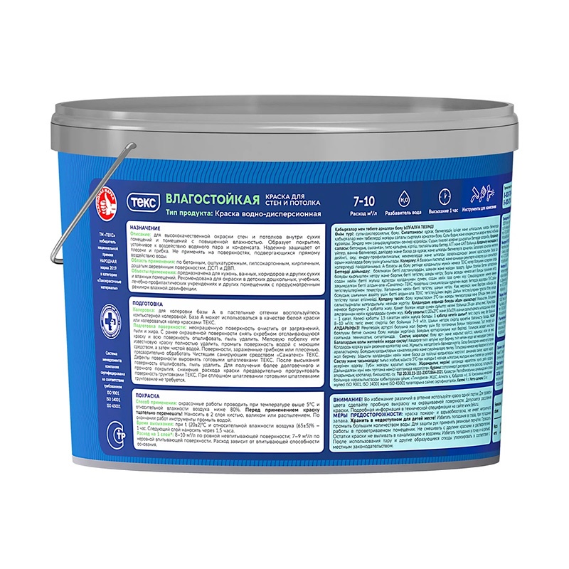 Предназначена для окраски стен и потолков в сухих и влажных помещениях. Устойчива к воздействию водяного пара и конденсата. Образует белое матовое покрытие. Надежно защищает от плесени и грибка.