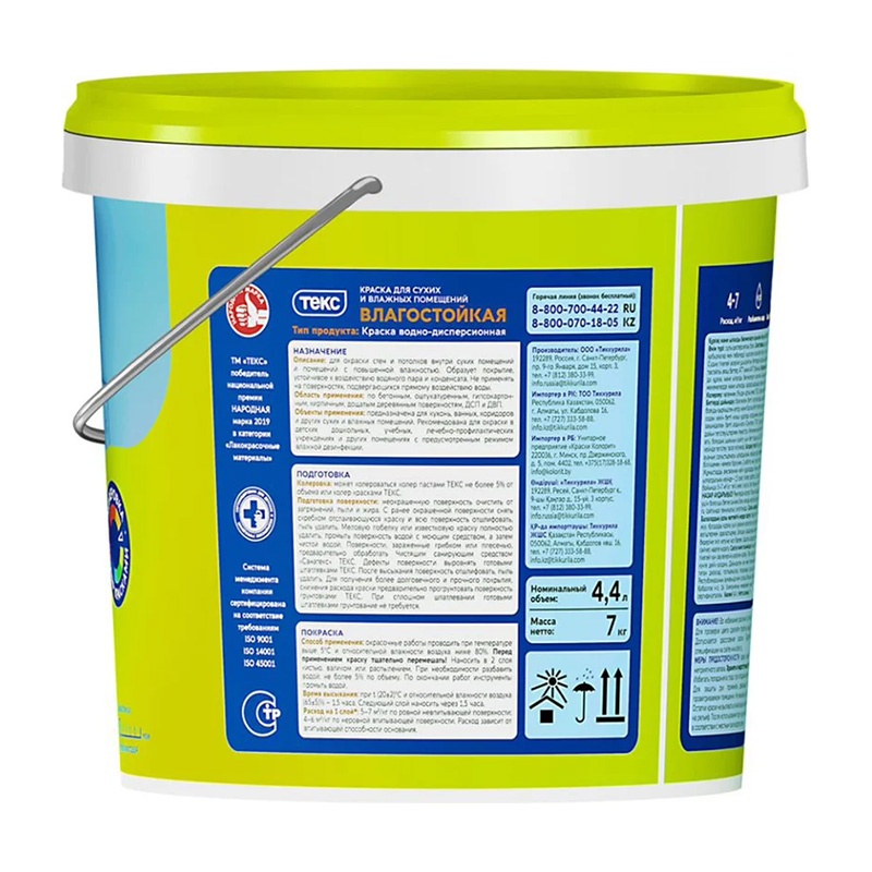 Краска в/д влагостойкая Текс Универсал (7 кг)