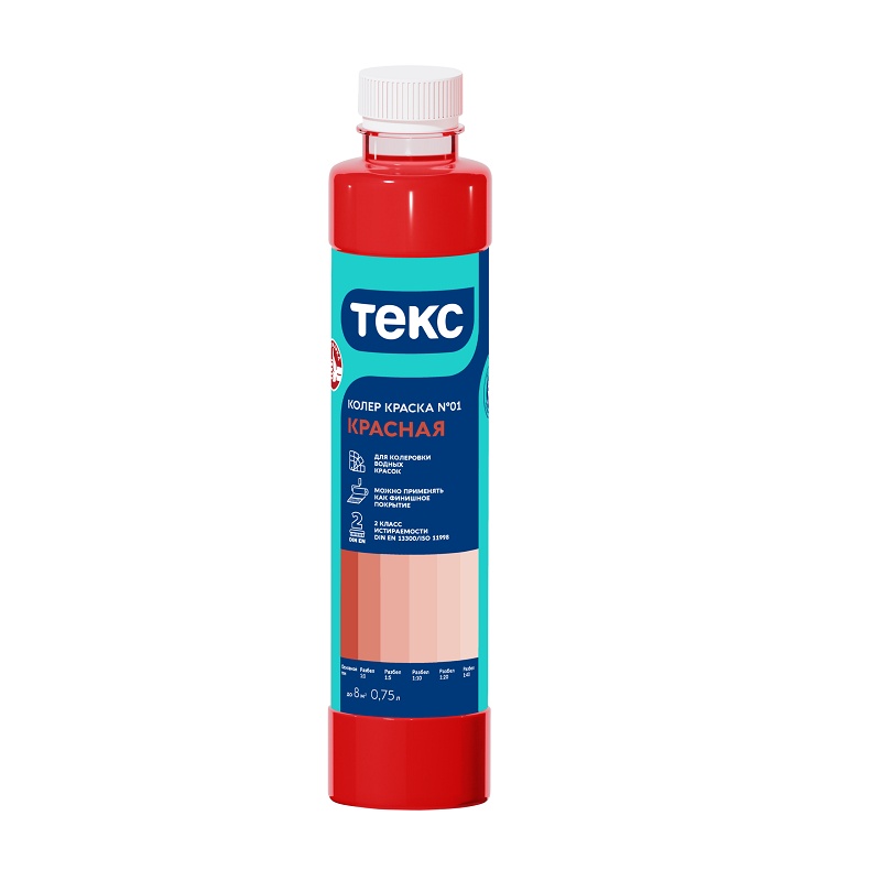 Краска колеровочная для в/д красок Текс N01 красная (0,75л)