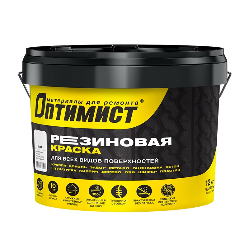 Краска резиновая Optimist F310 акриловая матовая белая (12 кг)
