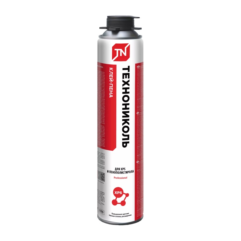 Клей-пена Технониколь Professional для пенополистирола – профессиональный однокомпонентный полиуретановый клей для надежного монтажа плит из пенополистирола и экструзионного пенополистирола к основанию при устройстве теплоизоляции внешних и внутренних стен здания, крыш, подвалов, фундаментов, полов как в новых, так и реконструируемых зданиях.