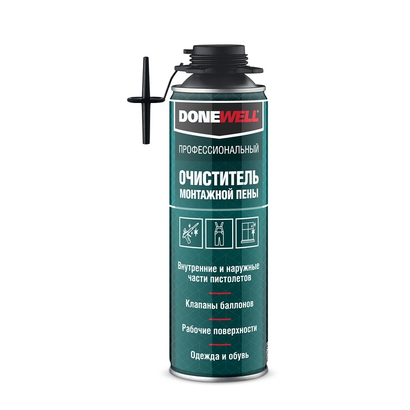 Предназначен для удаления загрязнений незатвердевшей однокомпонентной полиуретановой монтажной пены. Используется при очистке внутренних и наружных частях пистолетов для монтажной пены, клапанах баллонов, рабочих поверхностей, одежды.