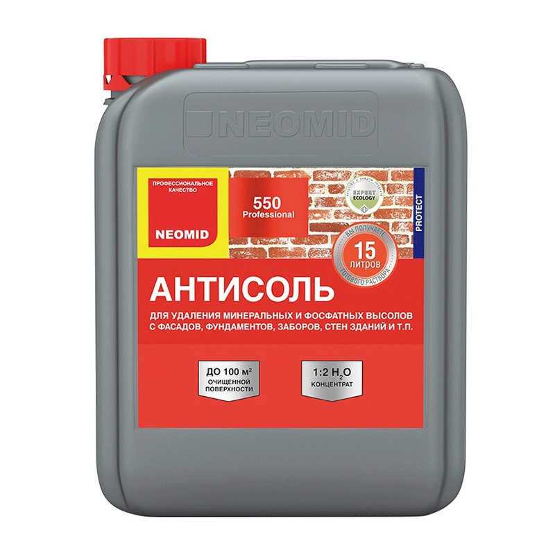 Предназначен для удаления минеральных высолов различного происхождения и состава с кирпича, природного и искусственного камня, бетона и т.п. Не изменяет цвет, свойств обрабатываемого материала, не разрушает кладочный раствор.