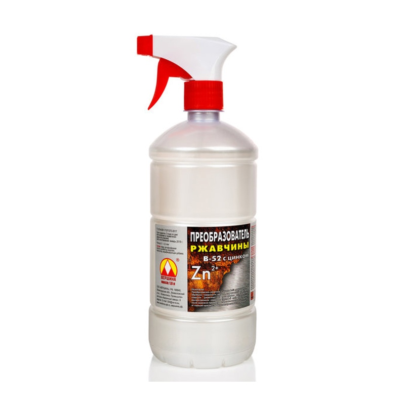 Преобразователь ржавчины с цинком В-52 предназначен для обработки поверхности металла, подверженной воздействию коррозии (ржавчины), с последующим ингибированием распространения коррозии. Грунтовый слой, образующийся после нанесения преобразователя и его высыхания, способствует хорошей адгезии с любыми лакокрасочными материалами.