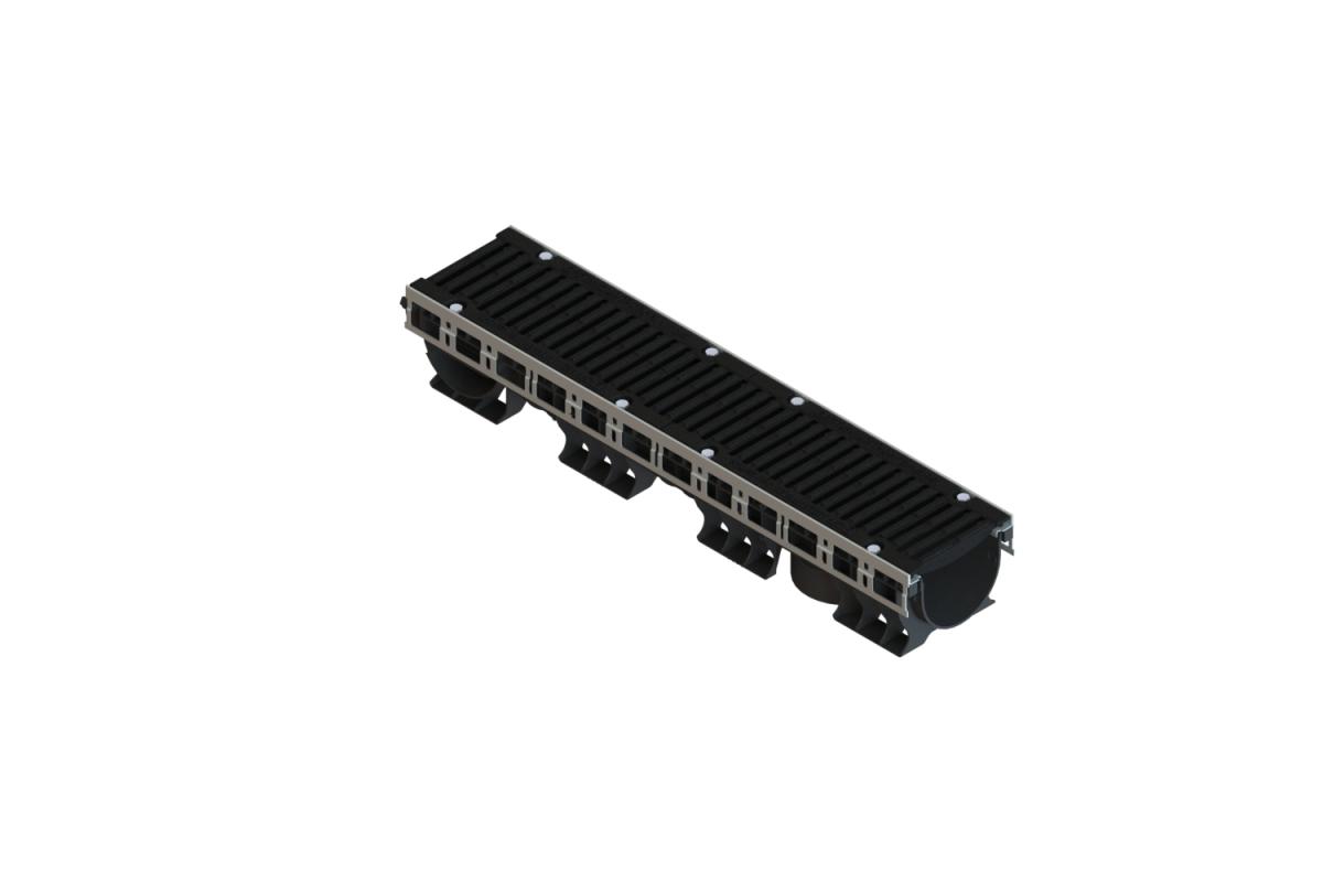 Лоток водоотводный пластиковый PolyMax Drive DN150 h166 с решеткой щелевой чугунной ВЧ кл.D400 (к-т)