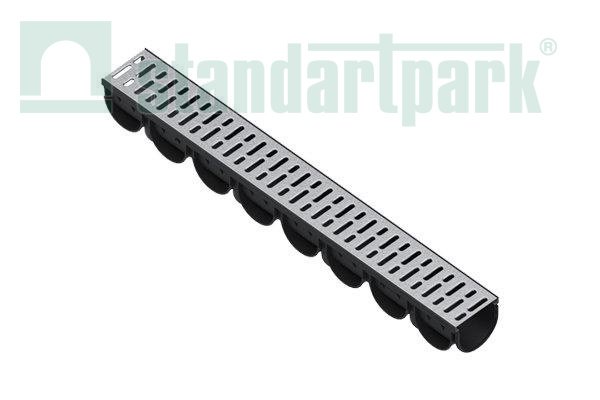 HTML:Лоток водоотводной с оцинкованной решеткой S’park 3 DN100 H100. Применяется для отведения стоков на частном участке где исключительно пешеходная нагрузка. Поставляется комплектом.