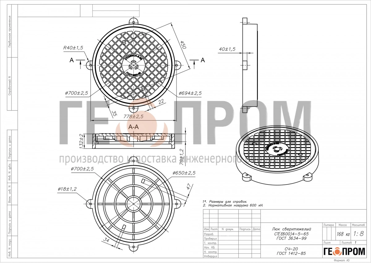 Артикул: Сверхтяжелый чугунный люк СТ(Е600)-4-5-65-parent Категория: