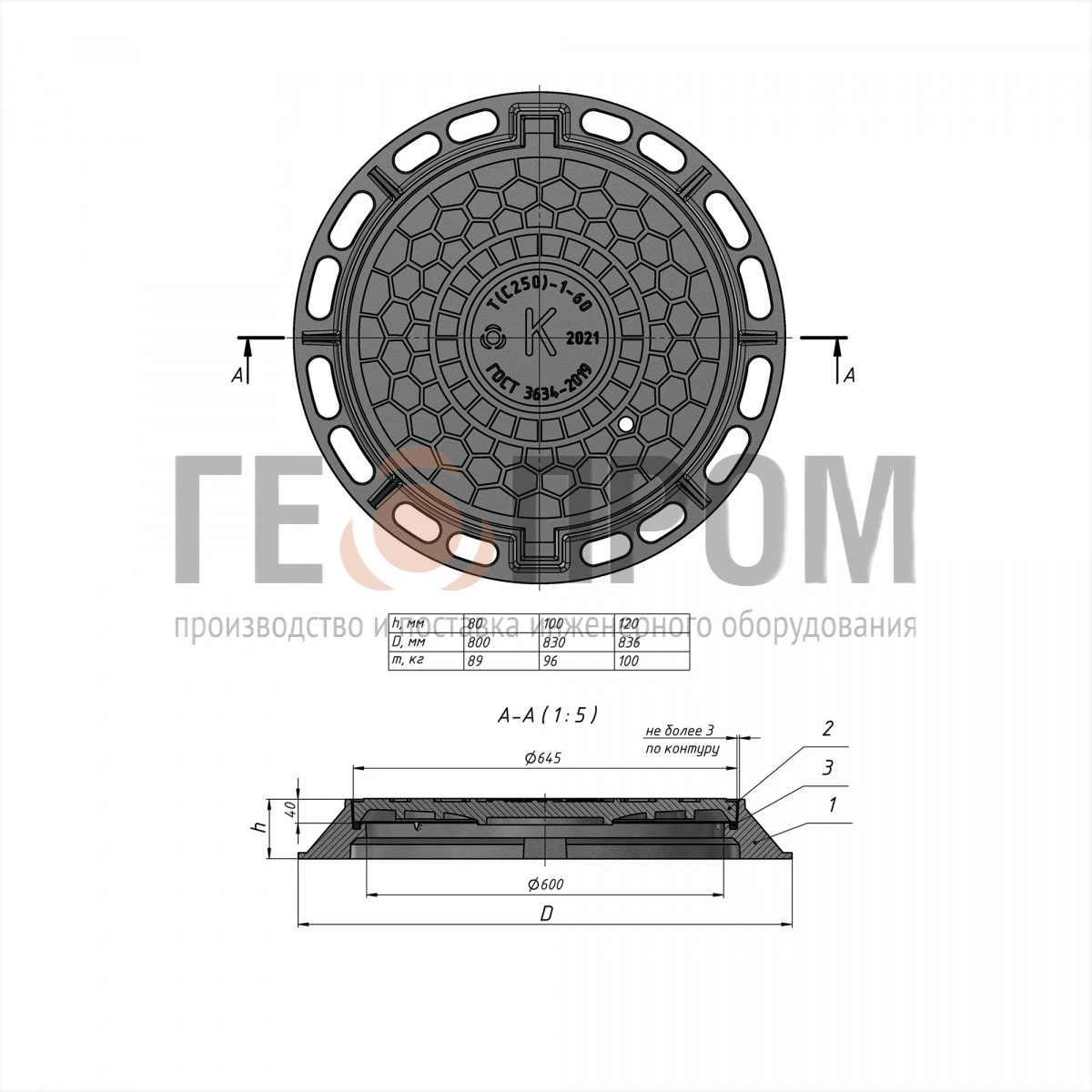 Чугунный люк тяжелого типа Т Люк С250-1-60 (Д, К, В, ТС, ТСОД, МГ, КК) с пазом под РТИ. Люк Т (С250) – один из самых прочных видов канализационных люков. предназначен для установки на автомагистралях с интенсивным движением транспорта: автомагистрали, городские улицы и промышленные объекты.