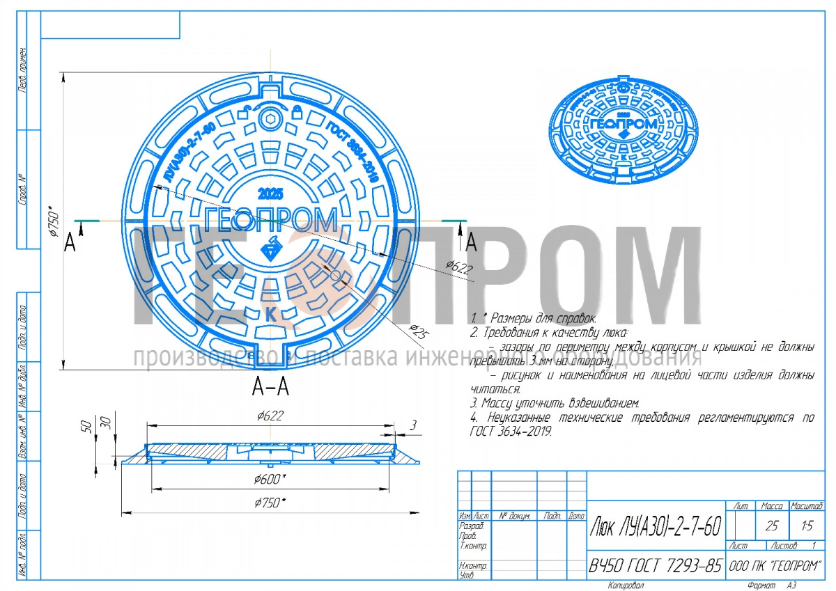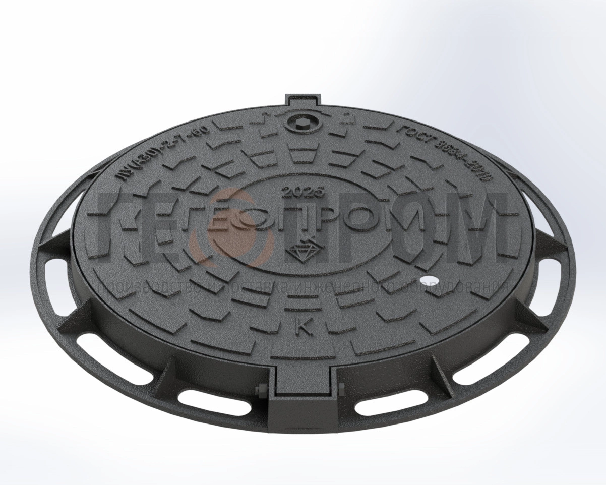 Люк ЛУ(А30)-2-7-60 из высокопрочного чугуна ВЧ50 — оптимальный выбор для обустройства смотровых колодцев инженерных сетей.