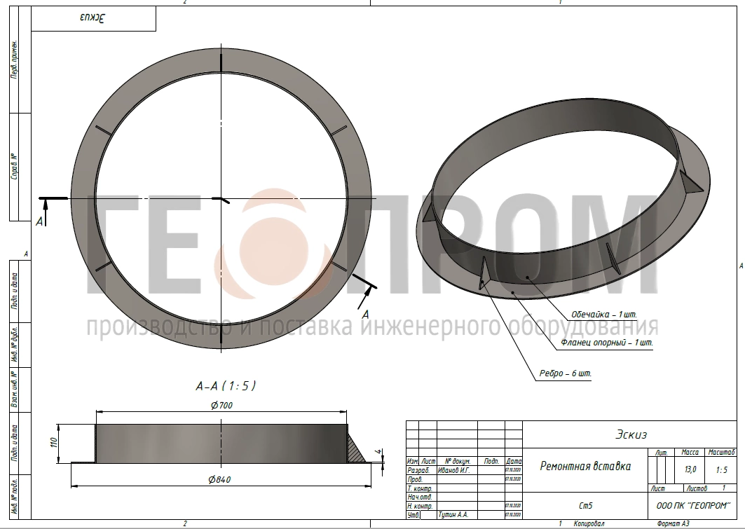 Является направляющим элементом для соблюдения соосности обечайки люка и отверстия в ЖБИ плите.