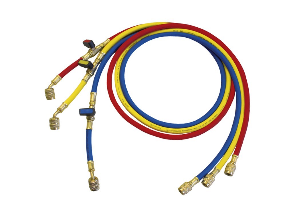 Напорные шланги серии “Плюс” с шаровым краном для хладагентов R410А, соединение 5/16″ SAE используются для проведения работ со системами охлаждения.