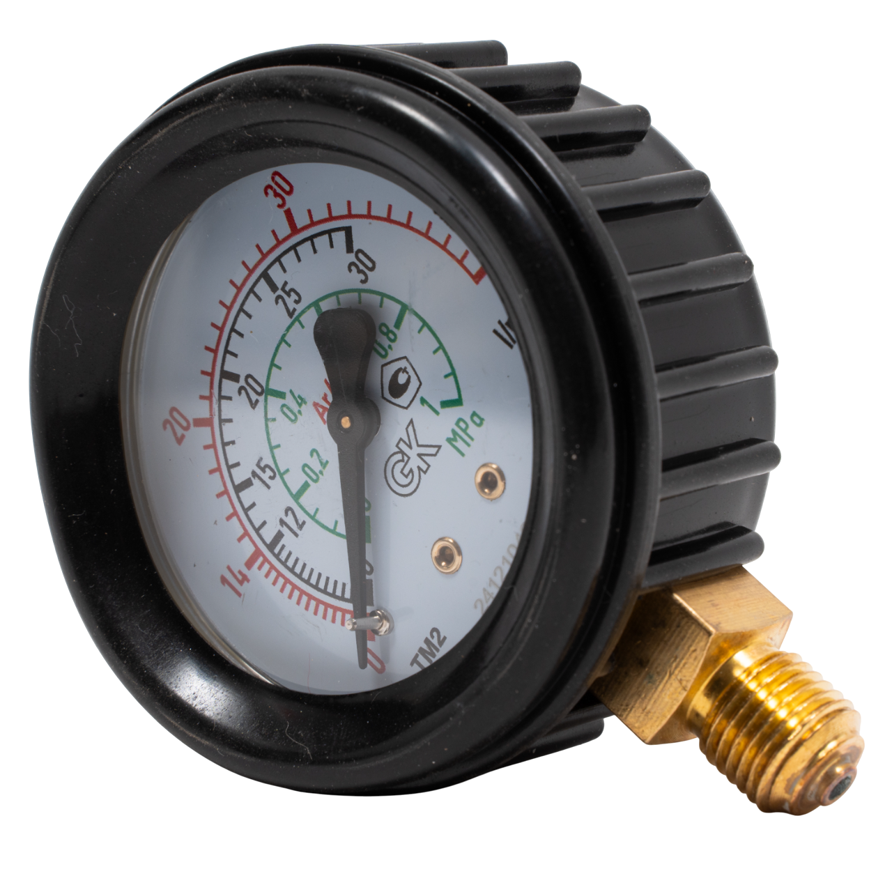 Расходомер (манометр) предназначена для измерения объемного расхода углекислого газа или аргона. Расходомер является неотъемлемой частью редуктора и вкручивается в основание с резьбой G1/4″. Штуцер имеет радиальное расположение и выполнен из латуни. Стальной корпуса манометра диаметром 63 мм защищён техническим (органическим) стеклом, циферблат выполнен из алюминия.