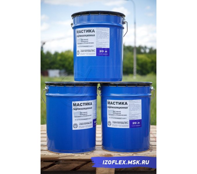Холодная гидроизоляционная мастика на основе битума предназначена для создания обмазочных гидроизоляционных слоев, а также защиты поверхностей из бетона, металла, дерева от воздействия коррозии. Кроме того, состав подходит для приклеивания к поверхности кровельных и гидроизоляционных битумных материалов рулонного типа.