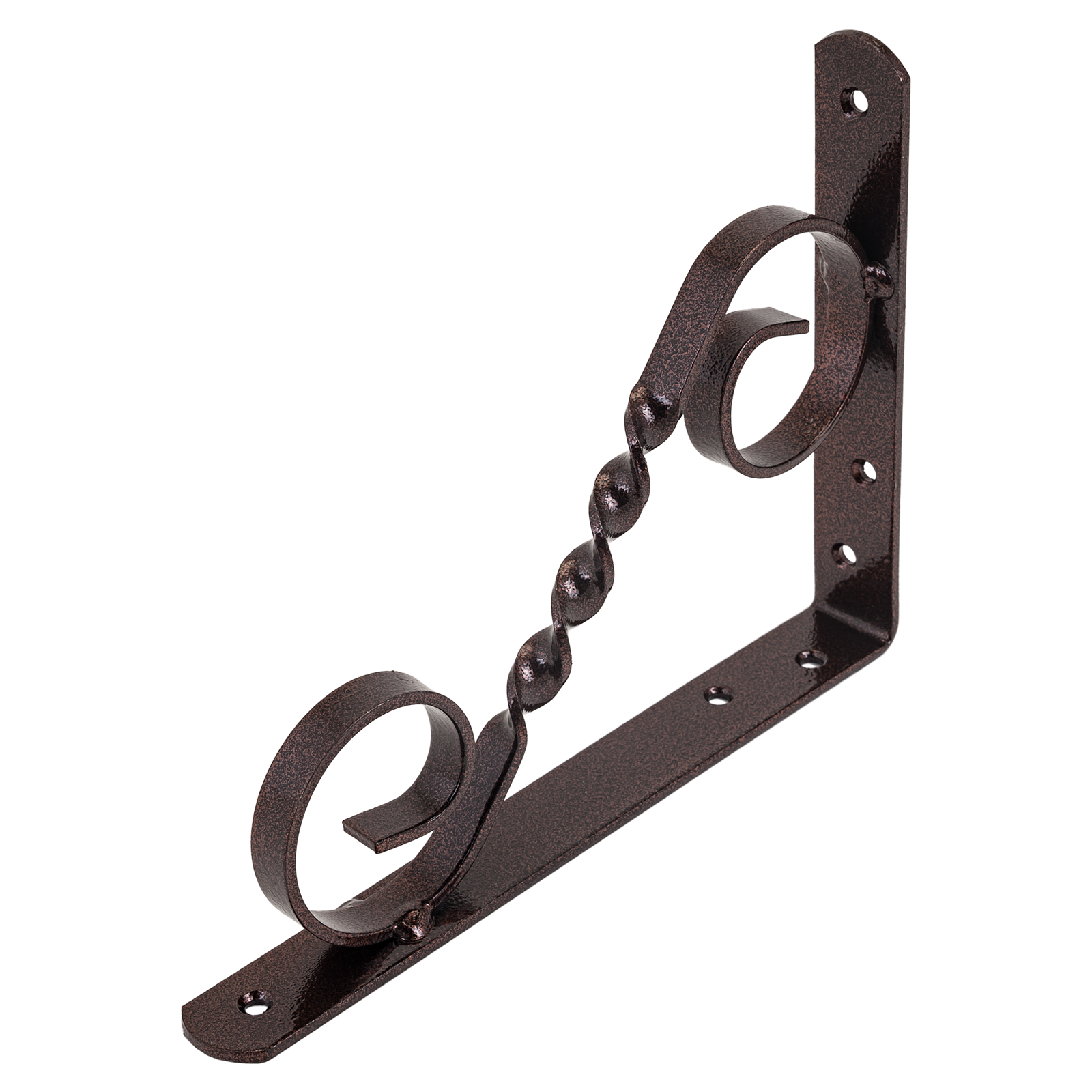 Кронштейн (полкодержатель, консоль для полок) применяются для крепления полок и стеллажей. Фигурные кронштейны с витой перекладиной — сочетание надежности и изящного дизайна.