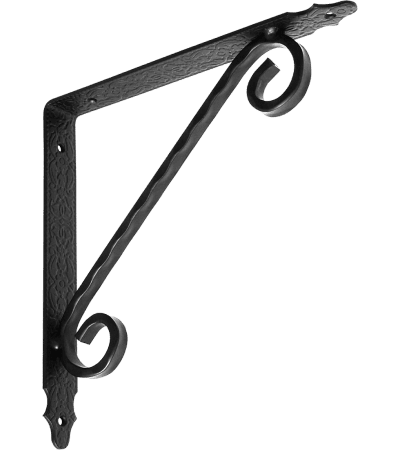 Кронштейн кованый применяется для крепления полок и стеллажей. Оригинальный орнамент выполнен по технологии холодной ковки.
