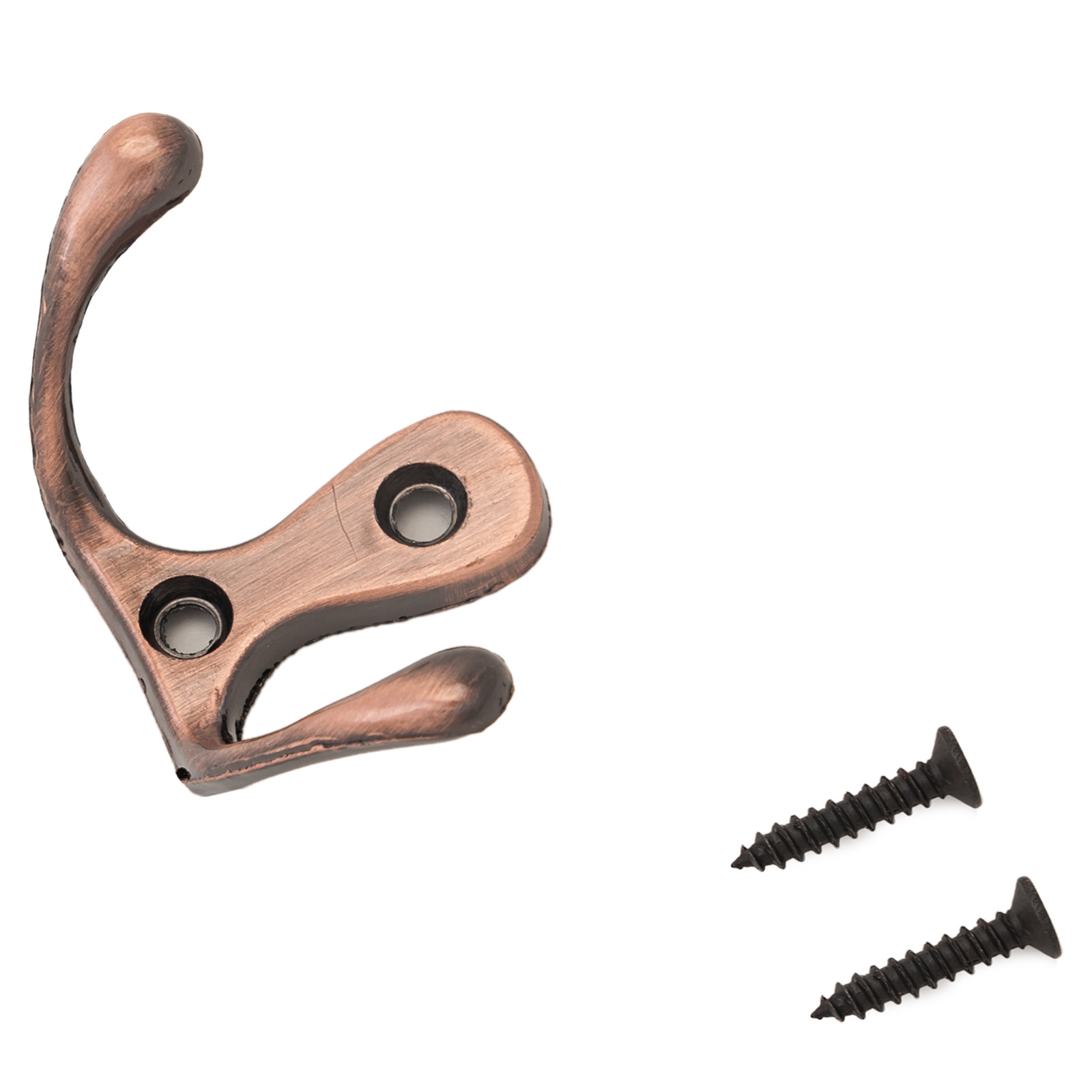Крючок-вешалка двухрожковый. Материал — цинковый сплав. Крепеж в комплекте.