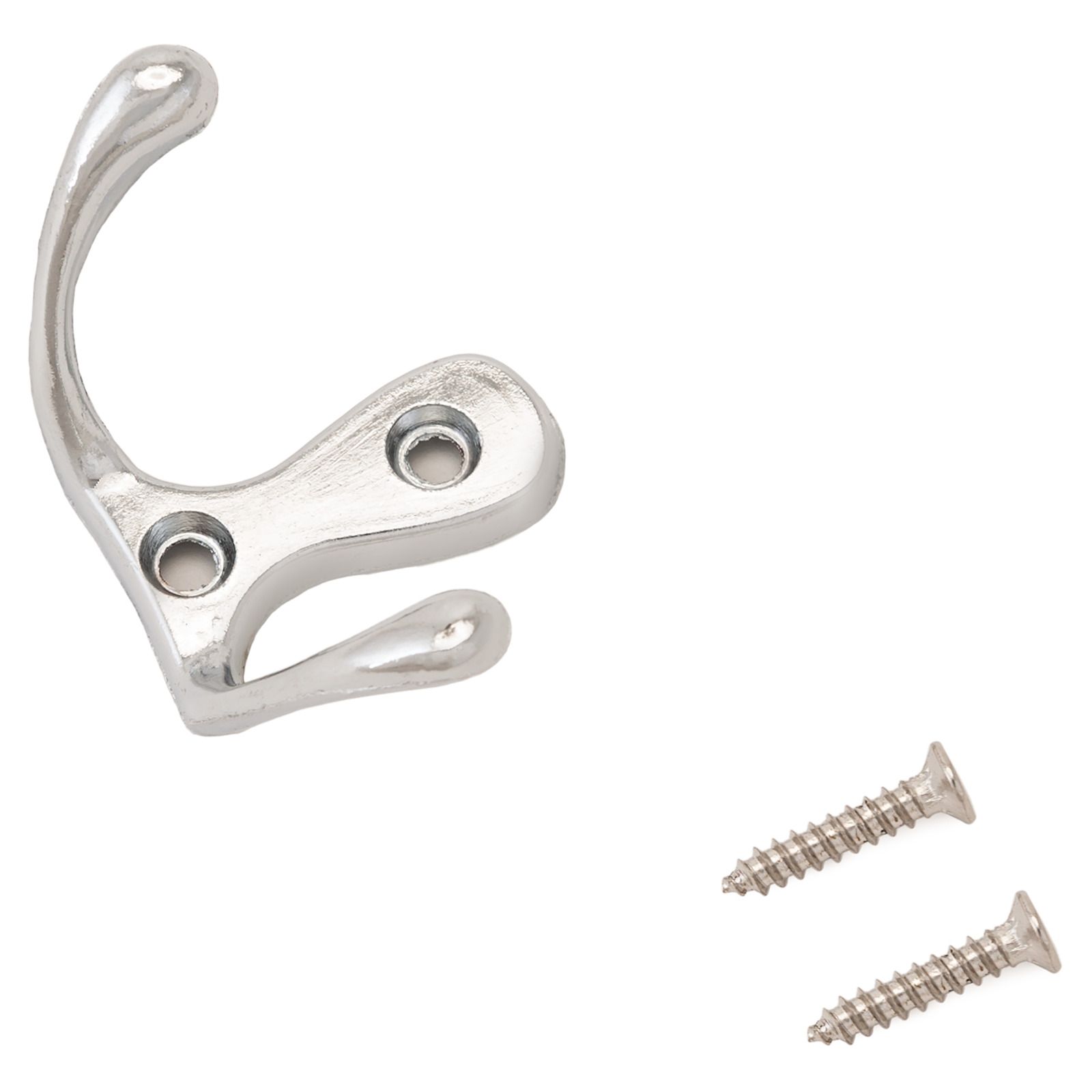 Крючок-вешалка двухрожковый. Материал — цинковый сплав. Крепеж в комплекте.