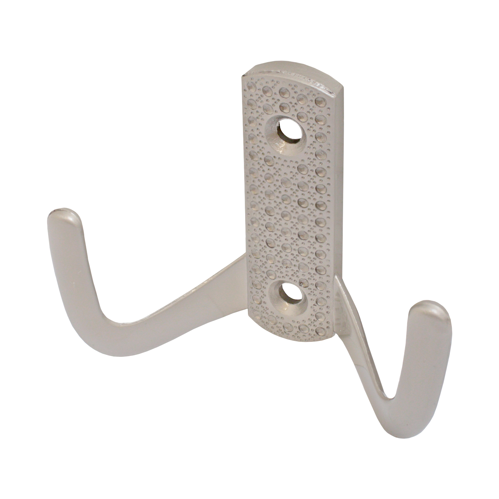 Крючок-вешалка двухрожковый. Материал — алюминиевый сплав. Крепеж в комплекте.