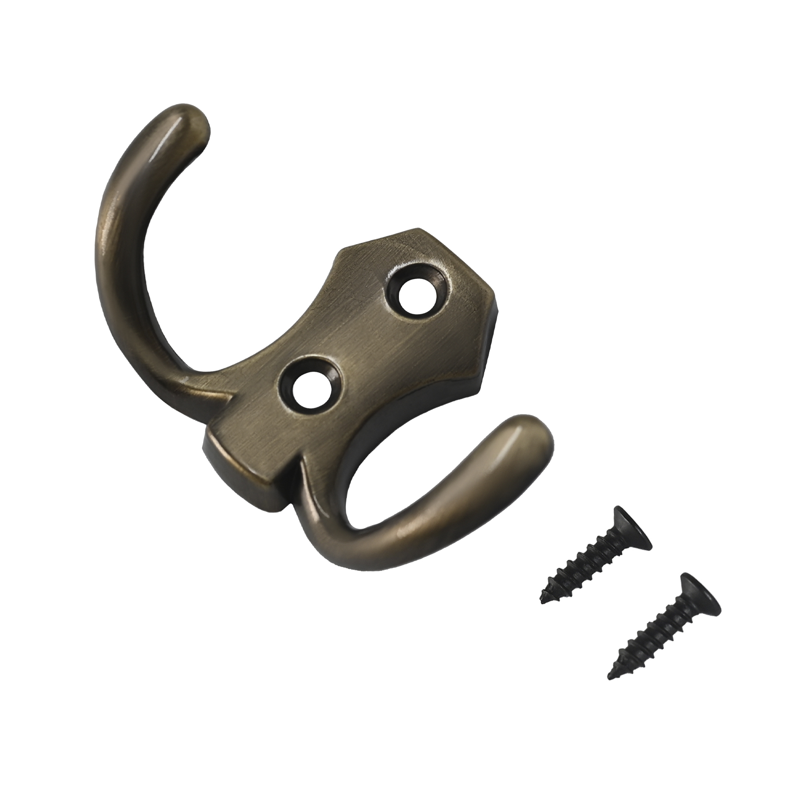 Крючок-вешалка двухрожковый. Материал — цинковый сплав. Крепеж в комплекте.