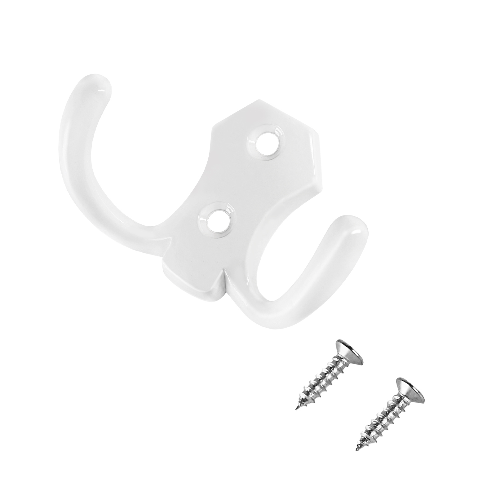 Крючок-вешалка двухрожковый. Материал — цинковый сплав. Крепеж в комплекте.