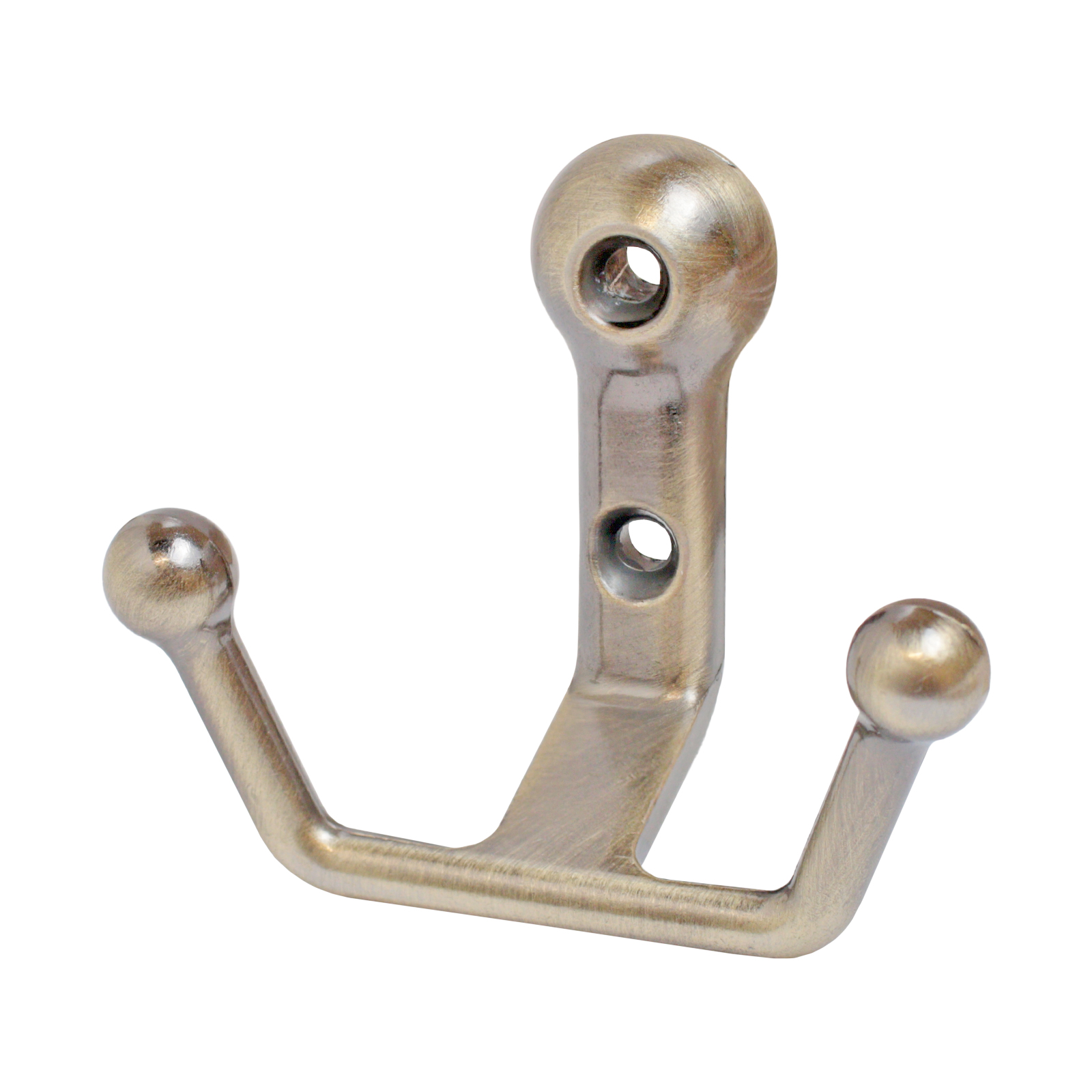 Крючок-вешалка двухрожковый. Материал — цинковый сплав. Крепеж в комплекте.
