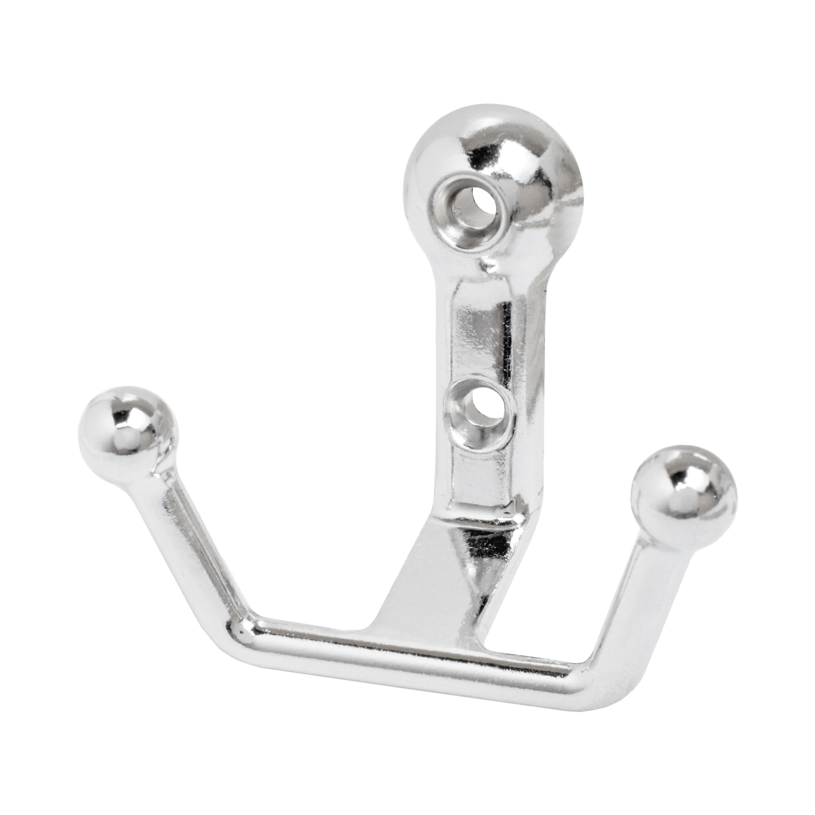 Крючок-вешалка двухрожковый. Материал — цинковый сплав. Крепеж в комплекте.