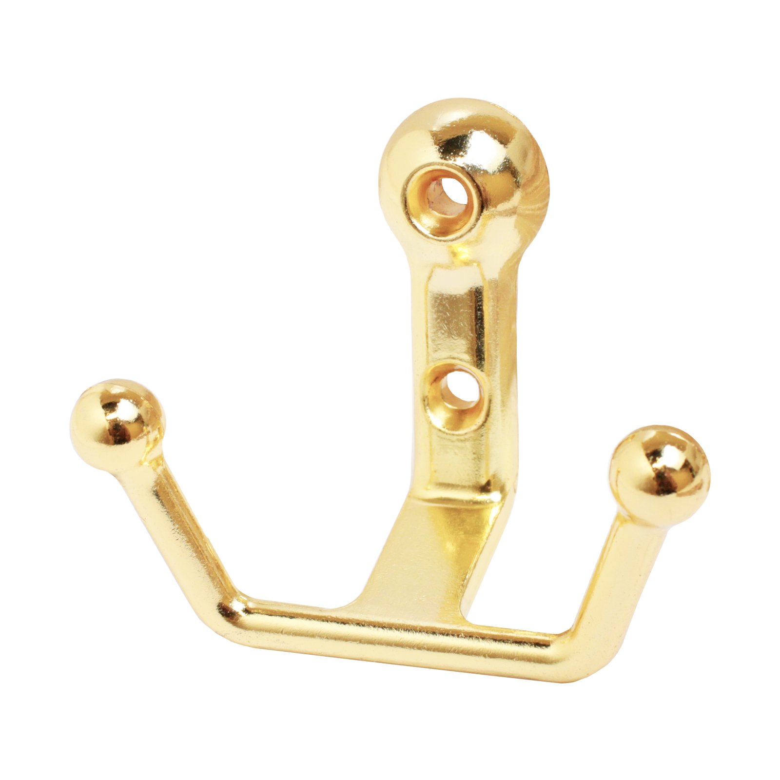 Крючок-вешалка двухрожковый. Материал — цинковый сплав. Крепеж в комплекте.