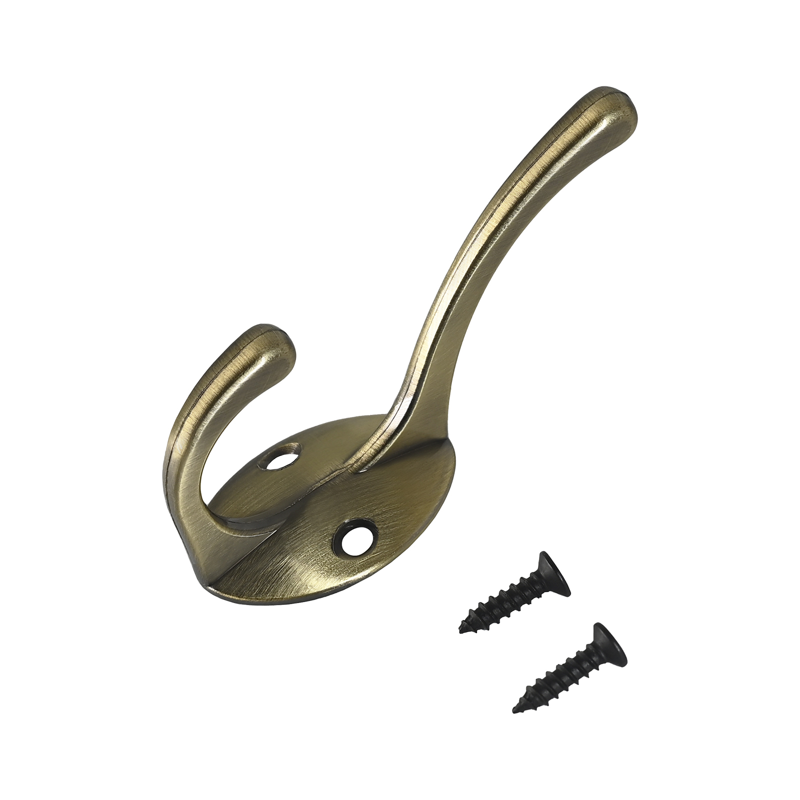 Крючок-вешалка двухрожковый. Материал — цинковый сплав. Крепеж в комплекте.