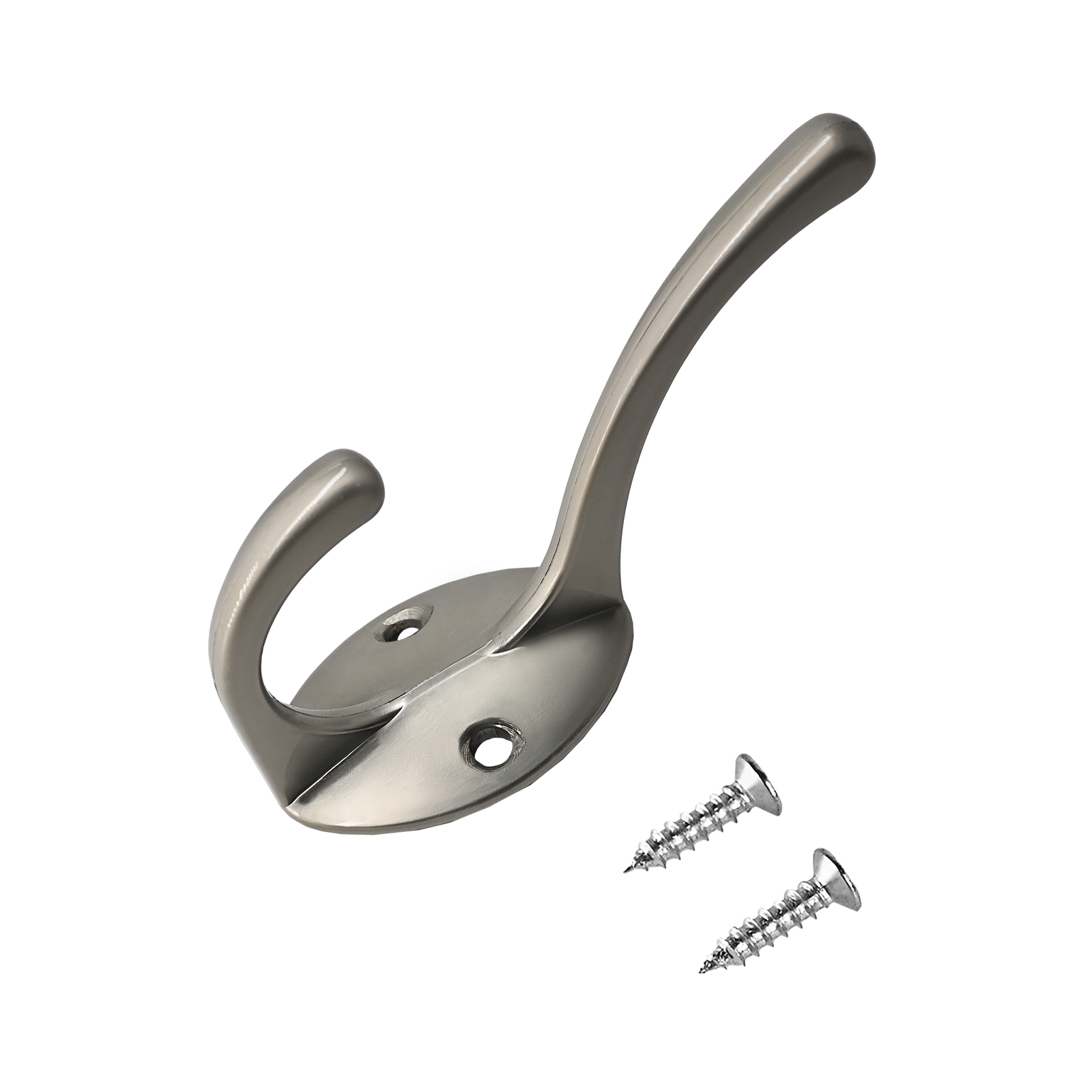 Крючок-вешалка двухрожковый. Материал — цинковый сплав. Крепеж в комплекте.