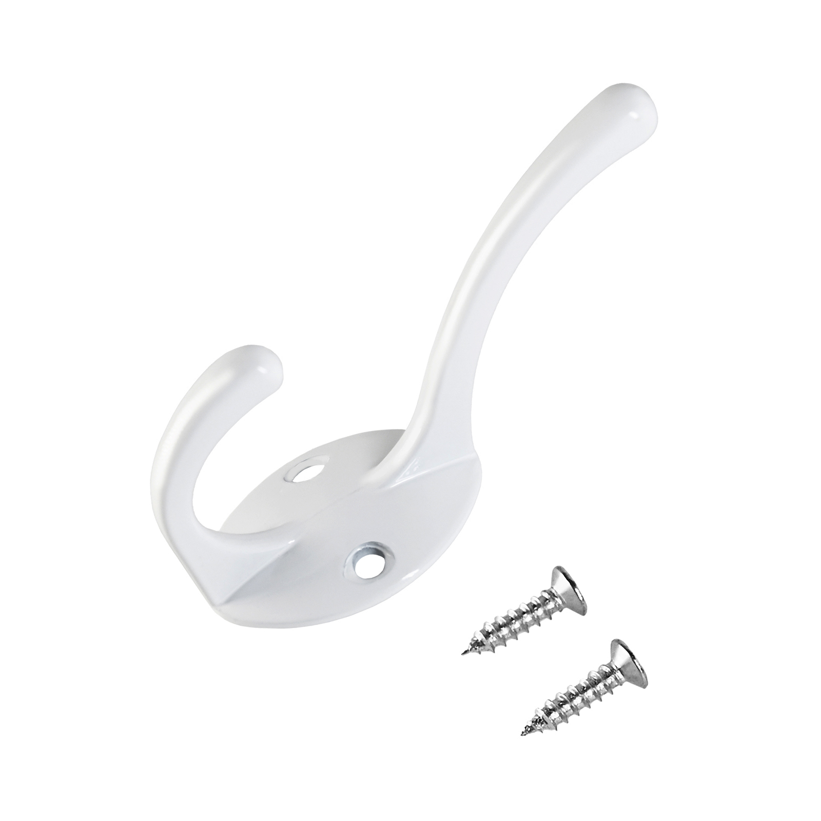 Крючок-вешалка двухрожковый. Материал — цинковый сплав. Крепеж в комплекте.