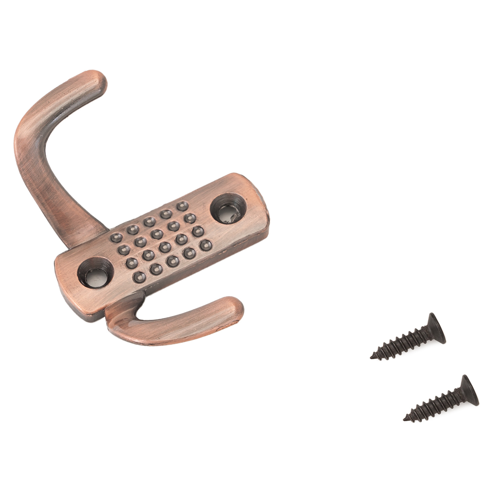 Крючок-вешалка двухрожковый. Материал — алюминиевый сплав. Крепеж в комплекте.