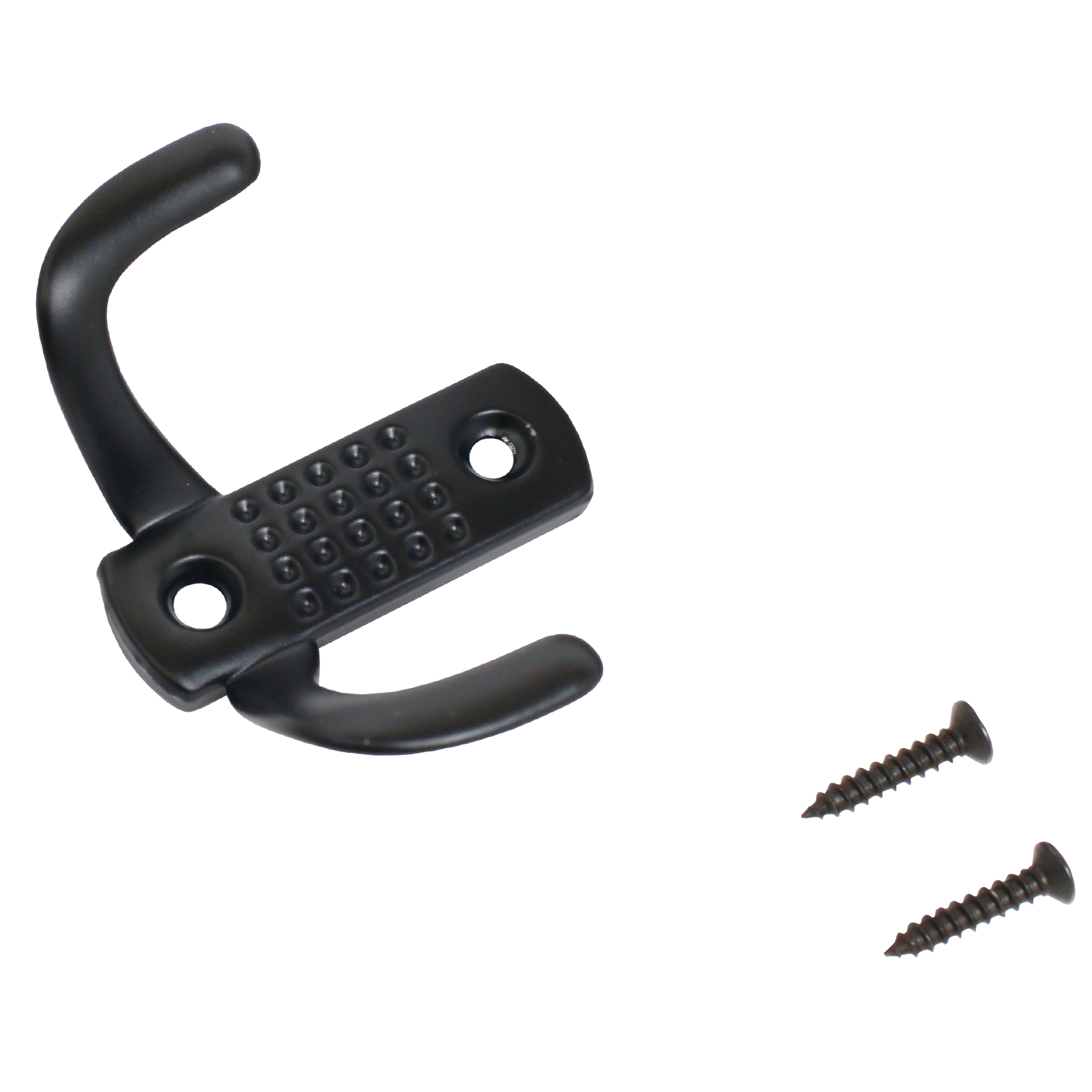 Крючок-вешалка двухрожковый. Материал — алюминиевый сплав. Крепеж в комплекте.