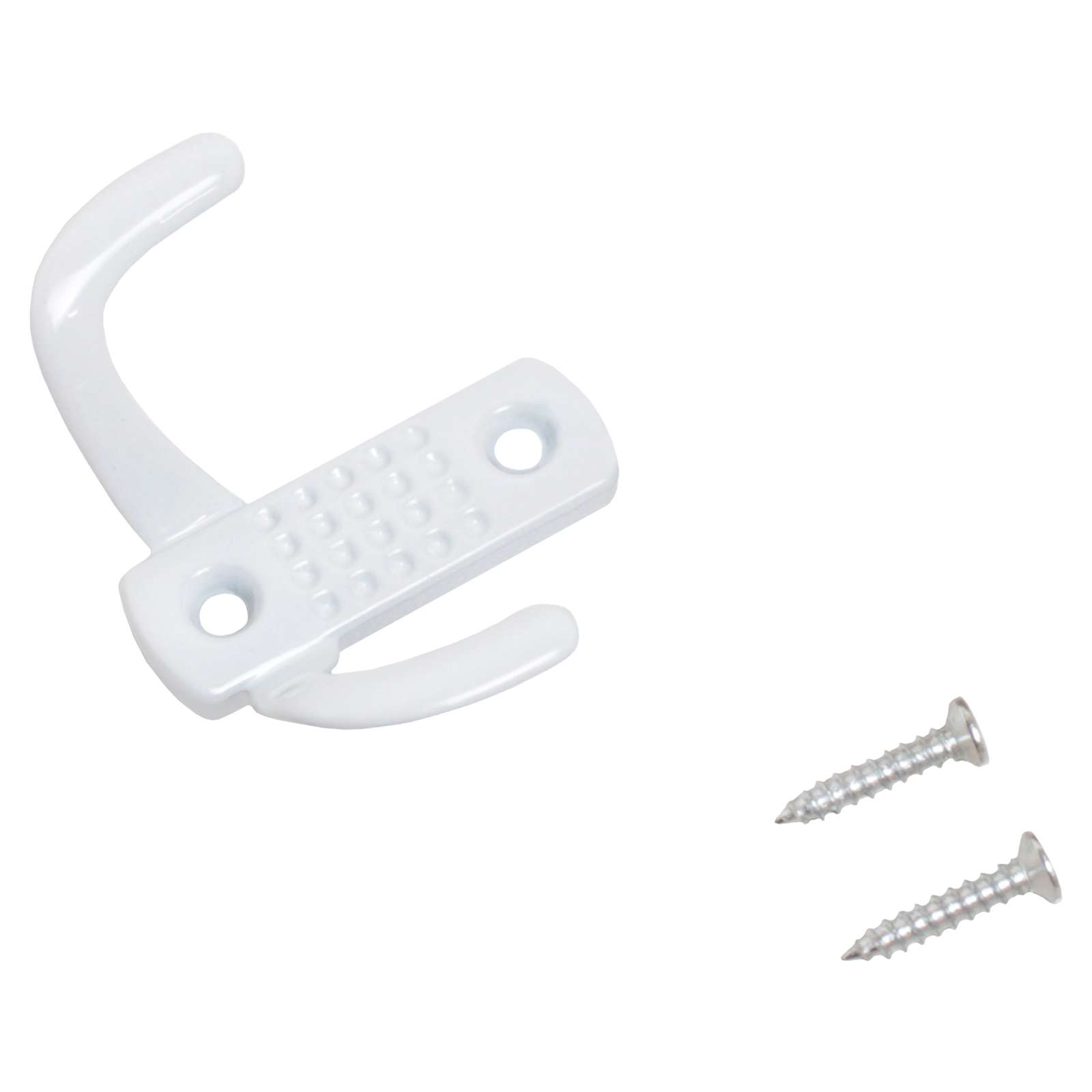 Крючок-вешалка двухрожковый. Материал — алюминиевый сплав. Крепеж в комплекте.