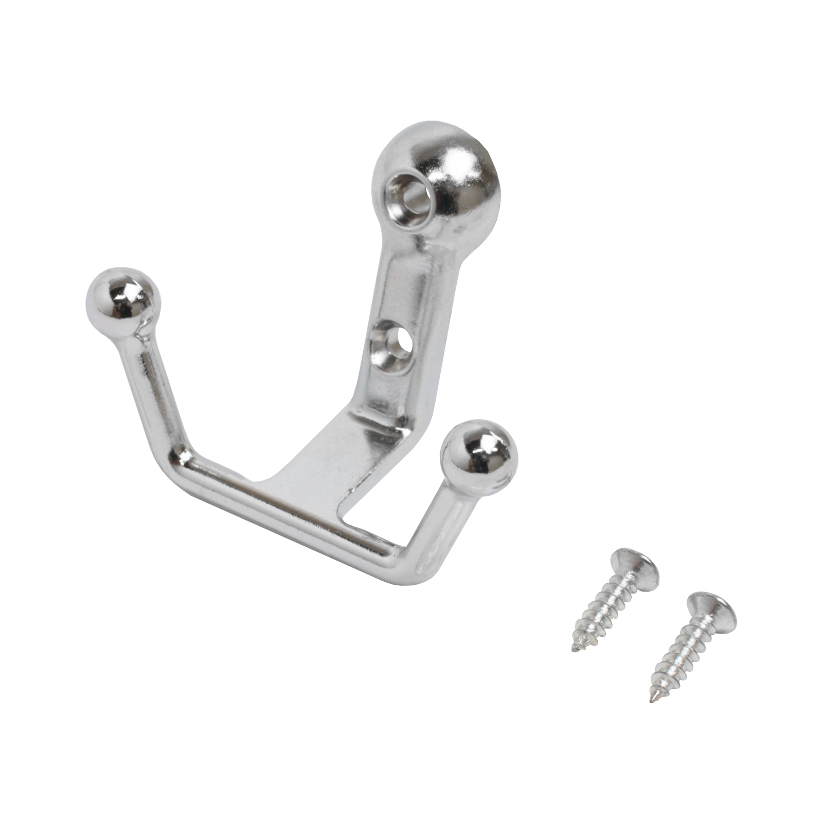 Крючок-вешалка двухрожковый. Материал — цинковый сплав. Крепеж в комплекте.