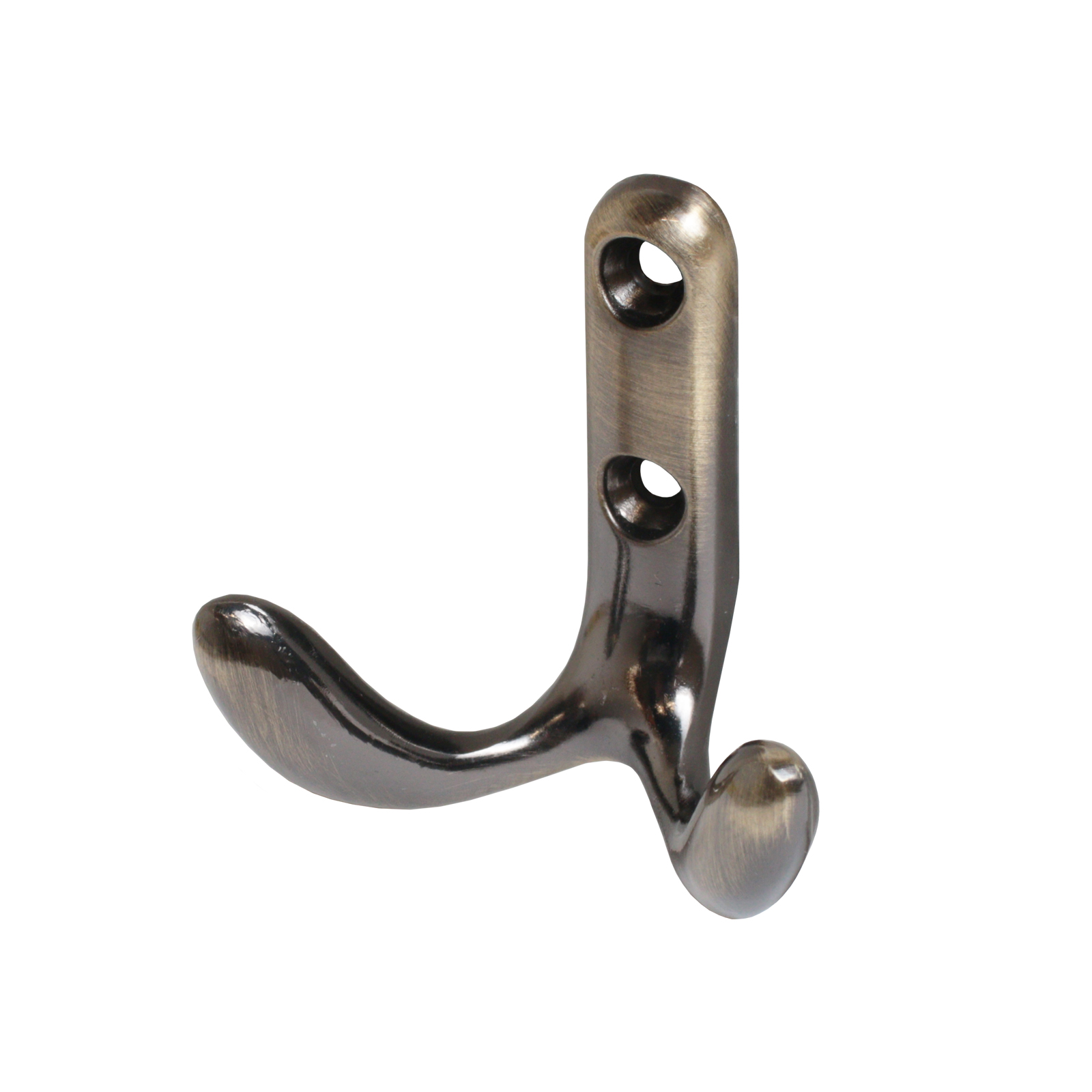Крючок-вешалка двухрожковый. Материал — цинковый сплав. Крепеж в комплекте.