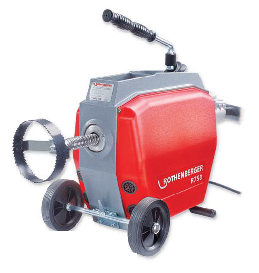 Для канализационных труб Ø 20 — 250 мм. Мощность 900Вт. Максимальная рабочая длина 80 м при использовании 32мм S-спиралей. В комплекте 32мм спирали и насадки.