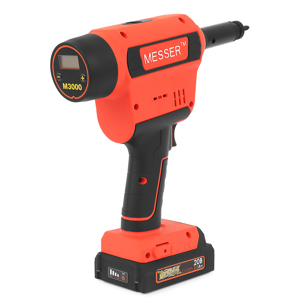 C электронным интерфейсом для настройки уровня сжатия заклепки с точностью до 0,1 мм. Под заклепки — М3, М4, М5, М6, М8, М10. Тяговое усилие заклепочника — 20 000 N. 20В, 2Ач, LiOn.