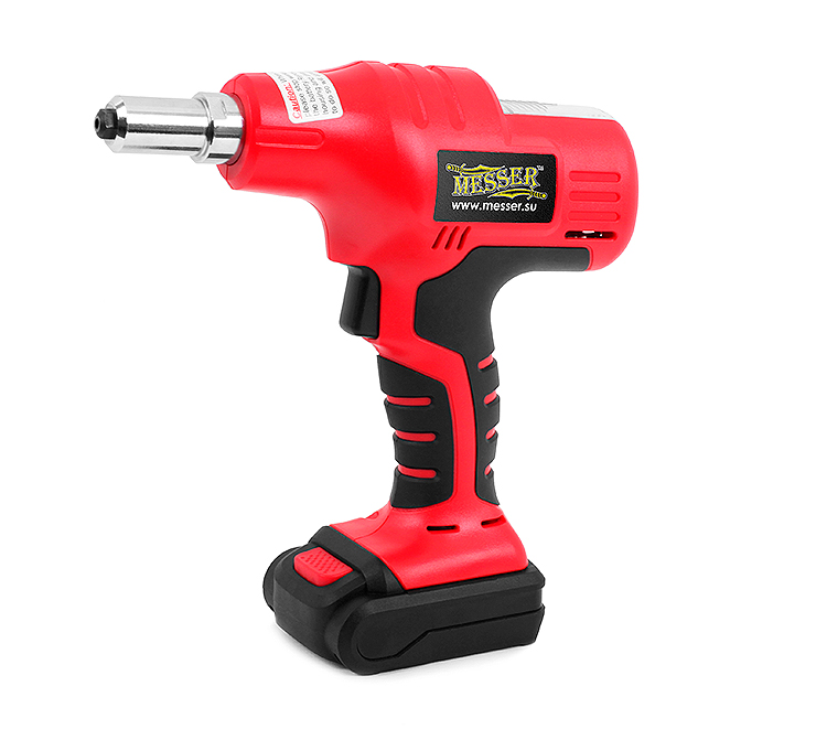 Аккумулятор Li-Ion 14,4 В, 2шт, емкость 1.5Ач, макс сила тяги: 9000 N, ход поршня: 21 мм, макс диаметр вытяжной заклепки: 5,0 мм, вес: 1,45 кг. В пластиковом кейсе.