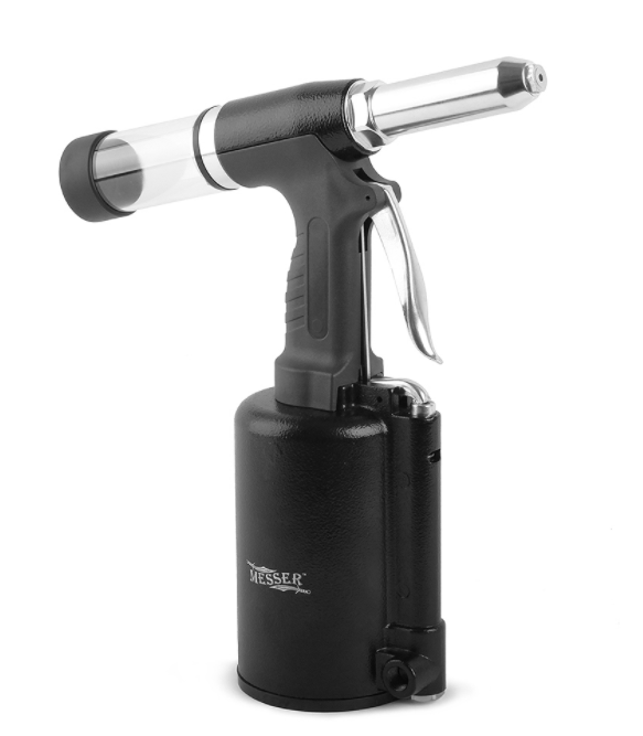 Тяговое усилие: 1420 кгс, макс диаметр заклепки: 6,4 мм, расход воздуха: 148 л/мин, ход поршня: 18 мм, рабочее давление: 4,9-5,86 бар, вес: 2 кг.