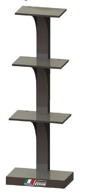 Стойка с четырьмя полками для показа электрических точильных станков. Максимальная нагрузка на каждую полку: 25 кг.